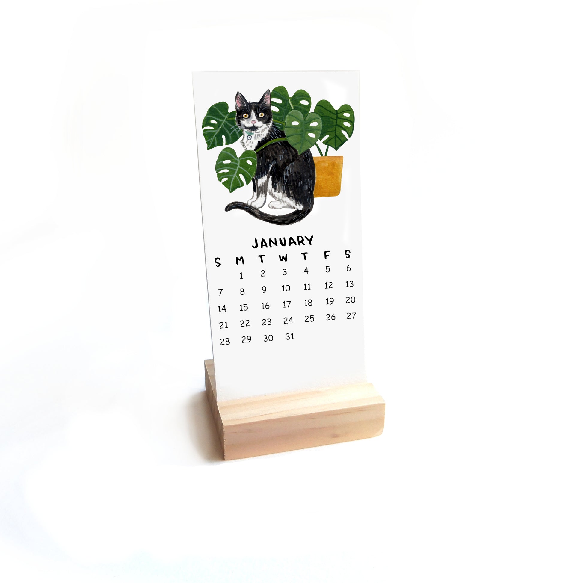 2024 Cats + Plants Watercolor Desk Calendar | Cat Lady Gift
